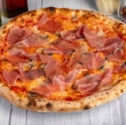 Aluatul casei, Sos roşii Monte Pomodori, Mozzarela, Prosciutto Cotto, Ciuperci de pădure, Parmezan